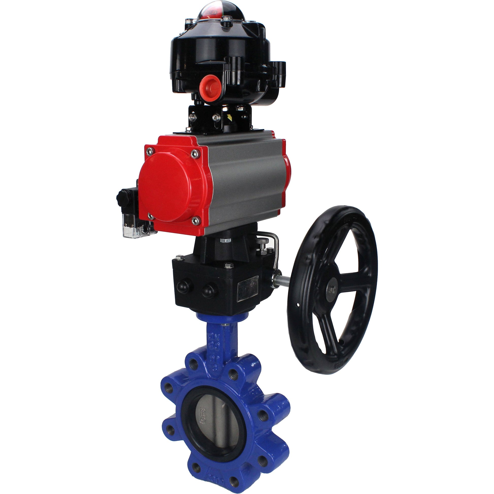 صمام فراشة الماء DNOVA WBV1631N-2W-Fb-H، مادة الهيكل - حديد زهر QT450، مادة القرص - فولاذ مقاوم للصدأ AISI 304، مانع تسرب - NBR، مشغل هوائي PA-DA مزدوج الحركة، 4M310-08 220 فولت، LSU APL-510N EX، عجلة يدوية MON