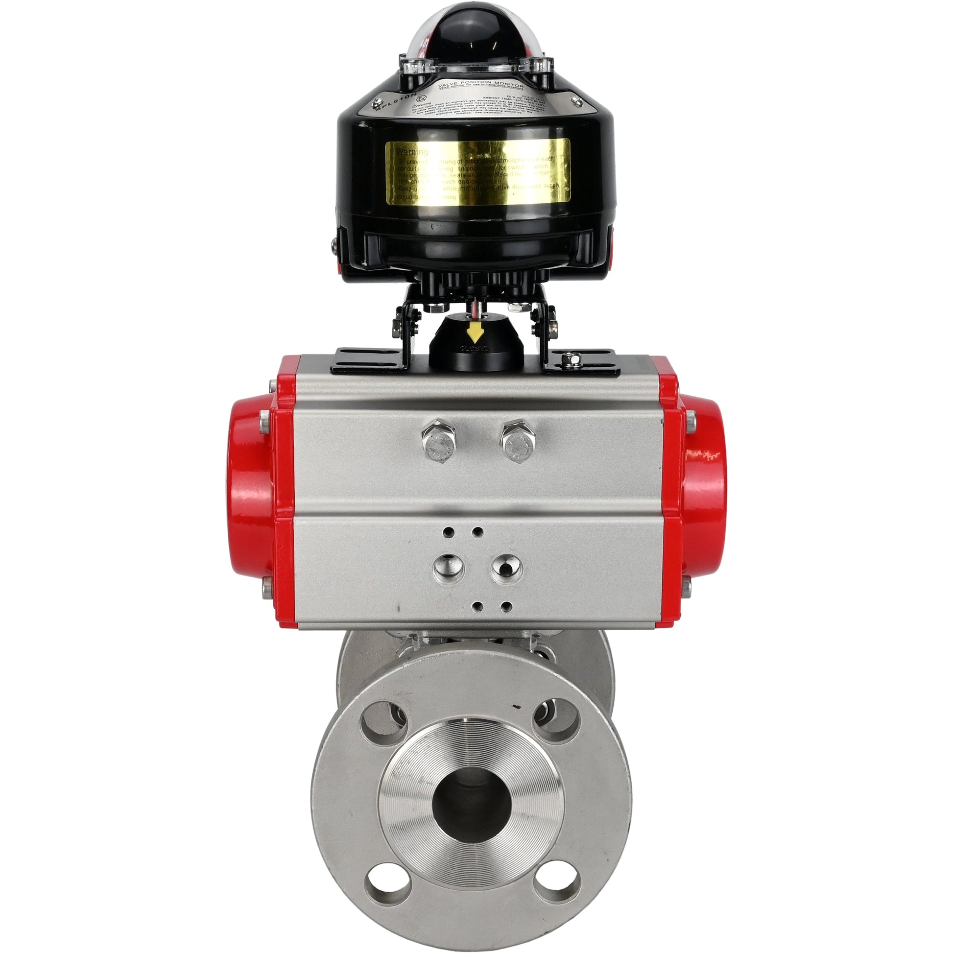 Ball valves DNOVA BV3131P(3pc)-FP-F-ISO-H flanged, full bore, three-piece, body - stainless steel SS304, seal - PTFE, with pneumatic actuator DNOVA PA-SA 065-160 and LSU APL -510N-EX