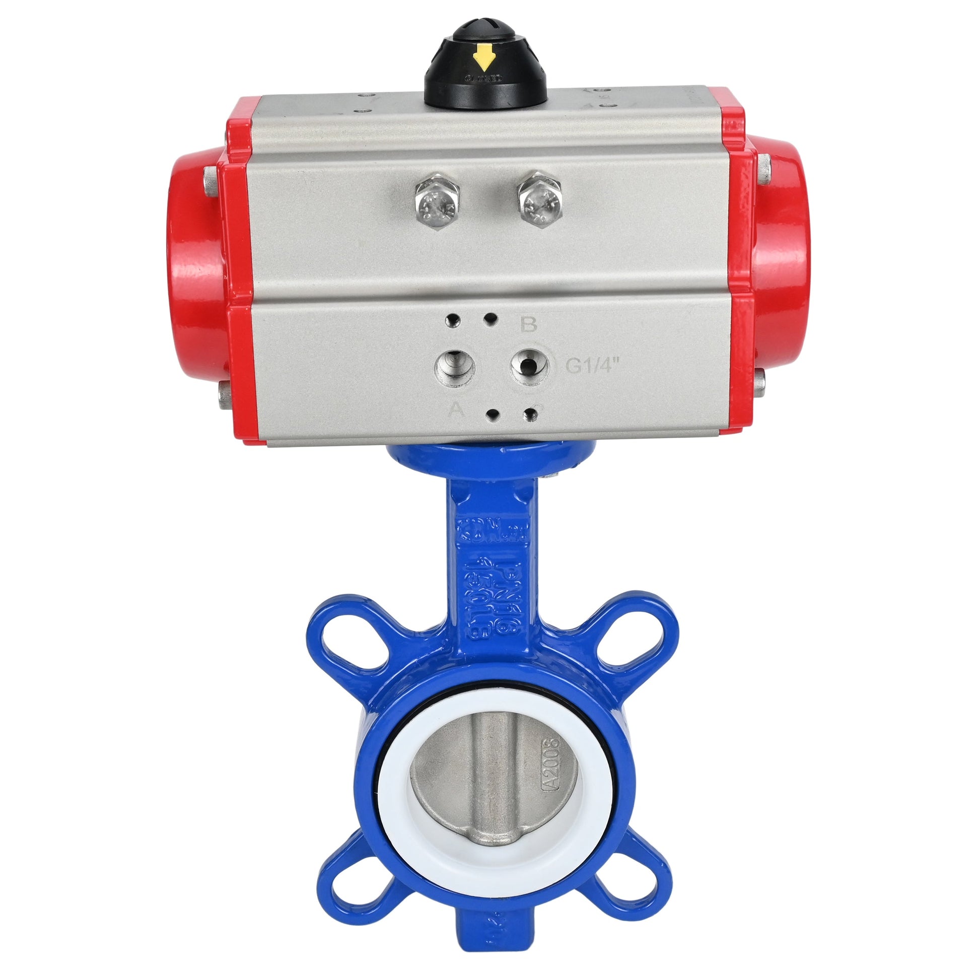 Water Butterfly Valve DNOVA st-316l-ptfe-DNOVA-da, body material - carbon steel WCB, disk material - stainless steel AISI 316L, seal - PTFE, pneumatic actuator operated
