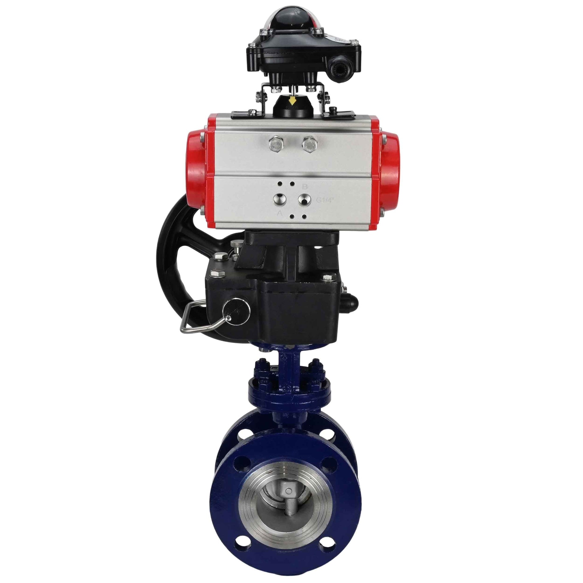 Water Butterfly Valve DNOVA WBV3EX-3431M-1W-F-ISO, body material - Carbon steel, disk material - Stainless steel AISI 304, seal - Metal, pneumatic actuator PA-DA double action, LSU APL-210N, handwheel MON,