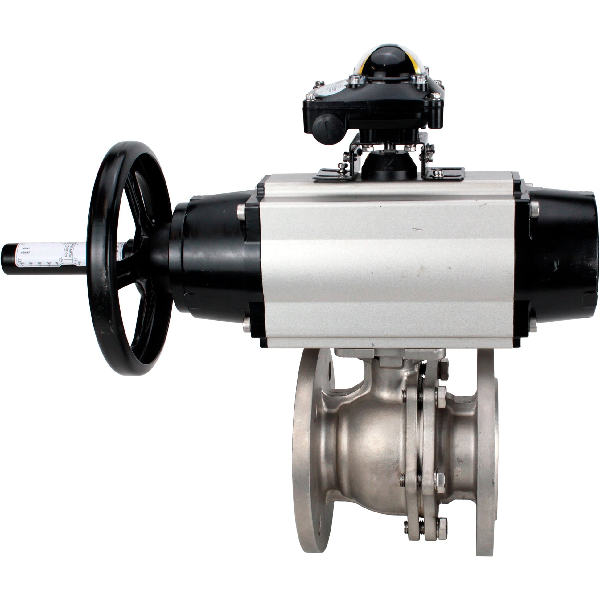 Válvulas de bola DNOVA BV3232P(2pc)-FP-F-ISO-H DN80-100 16 bar, paso total con brida, acero inoxidable SS316, junta - PTFE, con actuador neumático PA-DA-105-1 doble efecto, con distribuidor neumático 4M310-08 220V, con LSU APL-210N