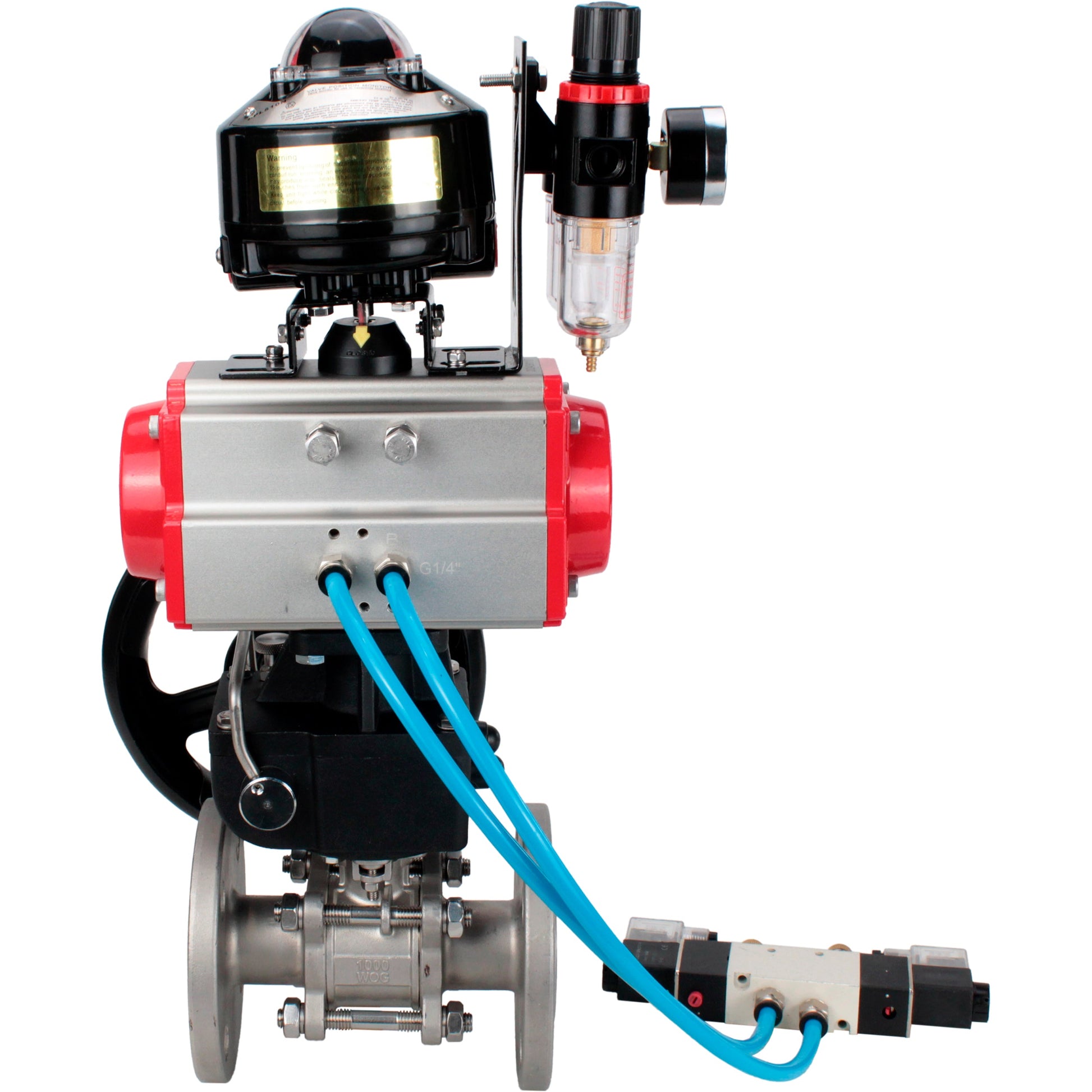 Válvulas de bola DNOVA BV3232P(3pc)-FP-F-ISO-H bridadas, de tres piezas, cuerpo - acero inoxidable SS316, sello - PTFE, con accionamiento neumático PA-DA-052-130 distribuidor neumático 4V320-10 reductor MON ATU AFC2000 LSU APL-510N-EX