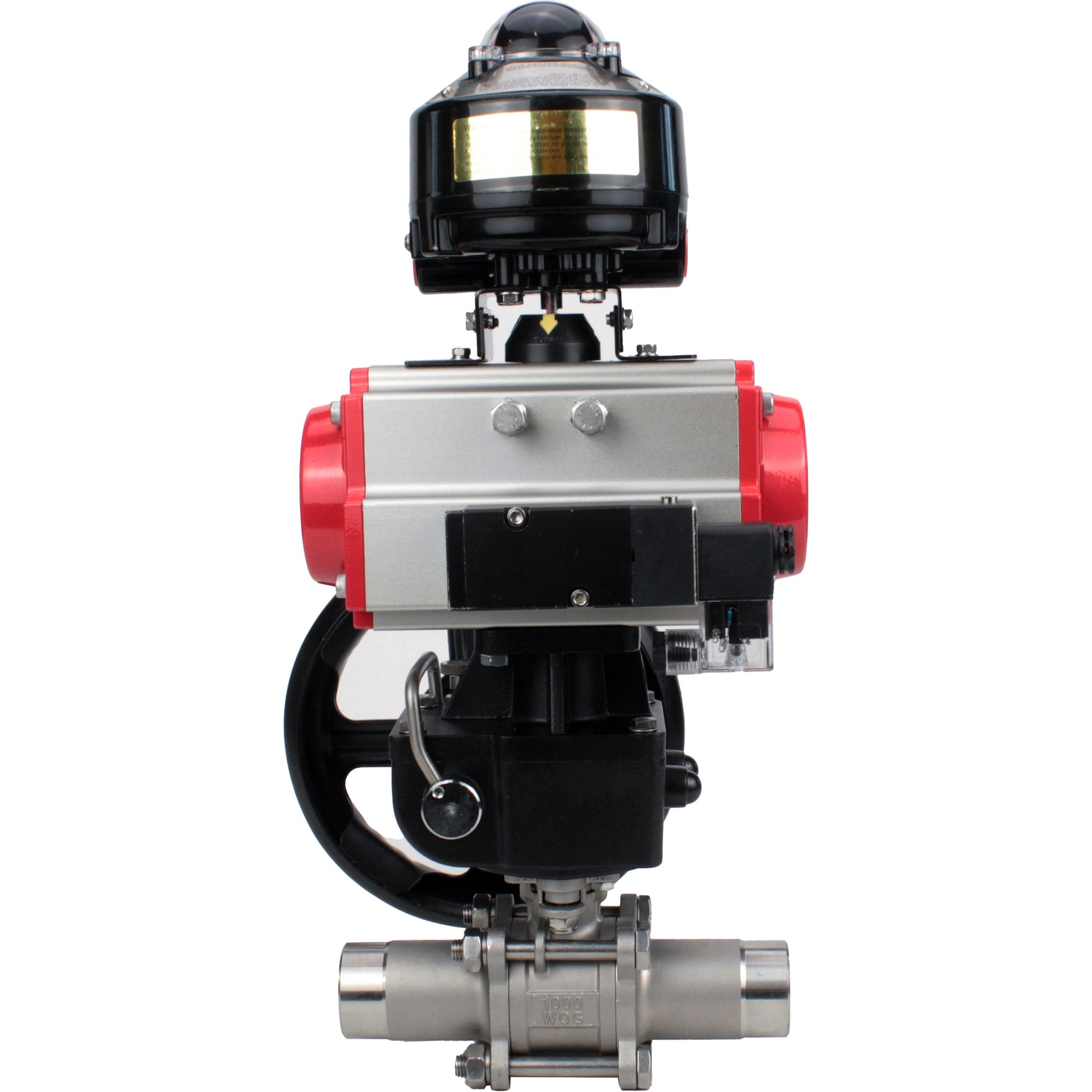 Válvulas de bola DNOVA BV3232P(3pc)-FP-W-ISO-H LONG DN50-150 paso total, cuerpo - acero inoxidable 316, para soldar, con actuador neumático PA-DA, distribuidor neumático 4M310-08 24V, reductor MON e interruptores de final de carrera de bloqueo APL-510N EX