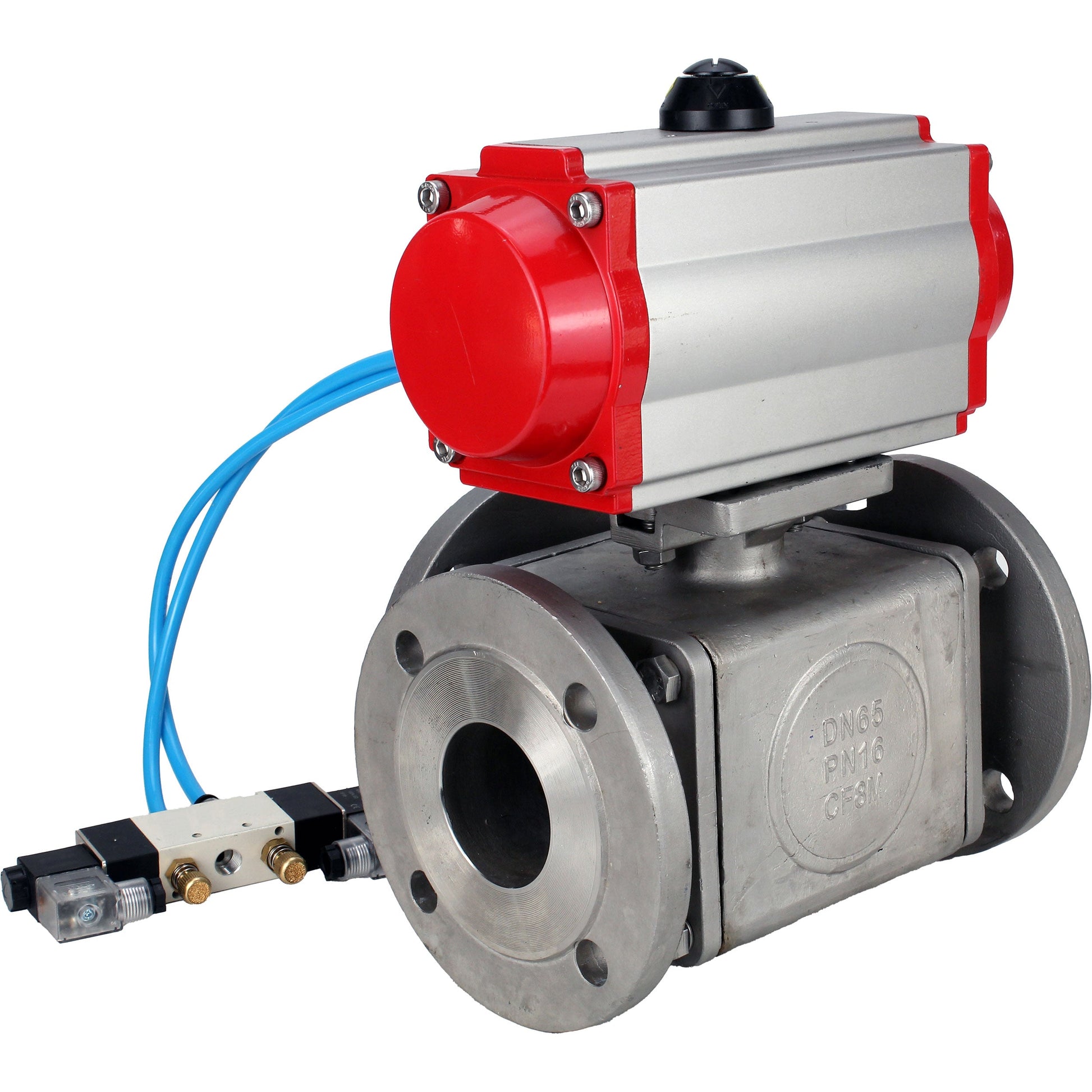 Válvulas de bola DNOVA BV3232P(4pc)-FP-3WL-F-ISO-H 16 bar paso total, bridada, cuerpo - acero inoxidable SS316, brida ISO F03/F04-F10/F12, cuadrado 9x9-19x19, con accionamiento neumático PA-DA doble efecto y distribuidor neumático 4V320-8 220V