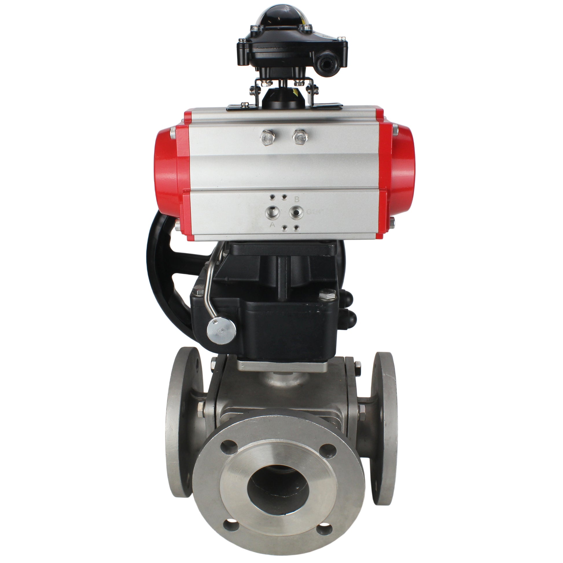Válvulas de bola DNOVA BV3232P(4pc)-FP-3WL-F-ISO-H 16 bar paso total, bridada, cuerpo - acero inoxidable SS316, brida ISO F03/F04-F10/F12, cuadrado 9x9-19x19, con accionamiento neumático PA-DA doble acción, LSU APL-210N y doblador manual MON3-700-T38
