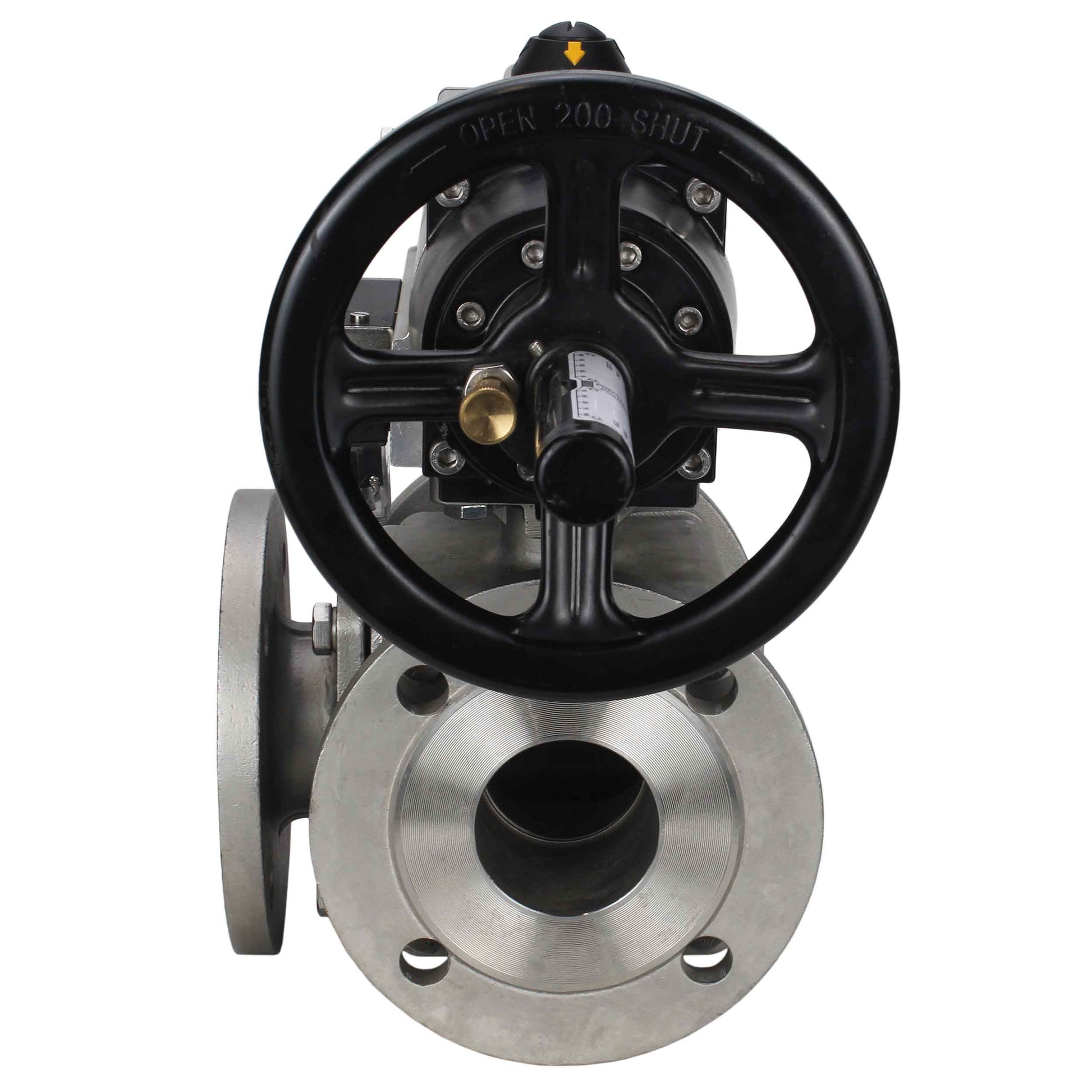 Válvulas de bola DNOVA BV3232P(4pc)-FP-3WL-F-ISO-H DN100 16 bar paso total, bridada, cuerpo - acero inoxidable SS316, brida ISO F10/F12, cuadrado 19x19, con actuador neumático de doble acción PA-DA-105-1 y distribuidor neumático 4M310-08 24V