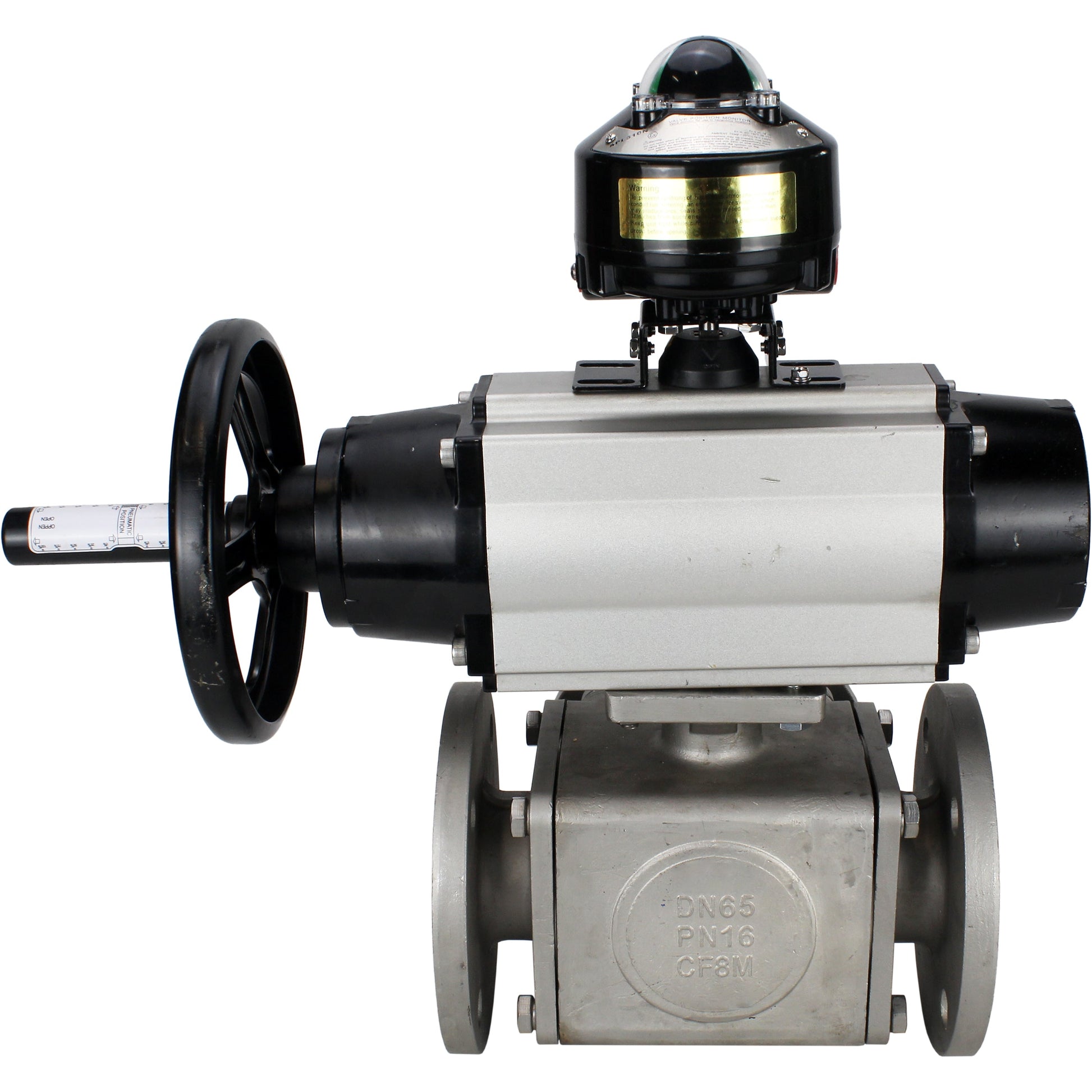 Ball valves DNOVA BV3232P(4pc)-FP-3WL-F-ISO-H DN100 16 bar full bore, flanged, body - stainless steel SS316, ISO flange F10/F12, square 19x19, with double pneumatic actuator PA-DA-105-1 action, pneumatic distributor 4M310-08 220V and LSU APL-510N E