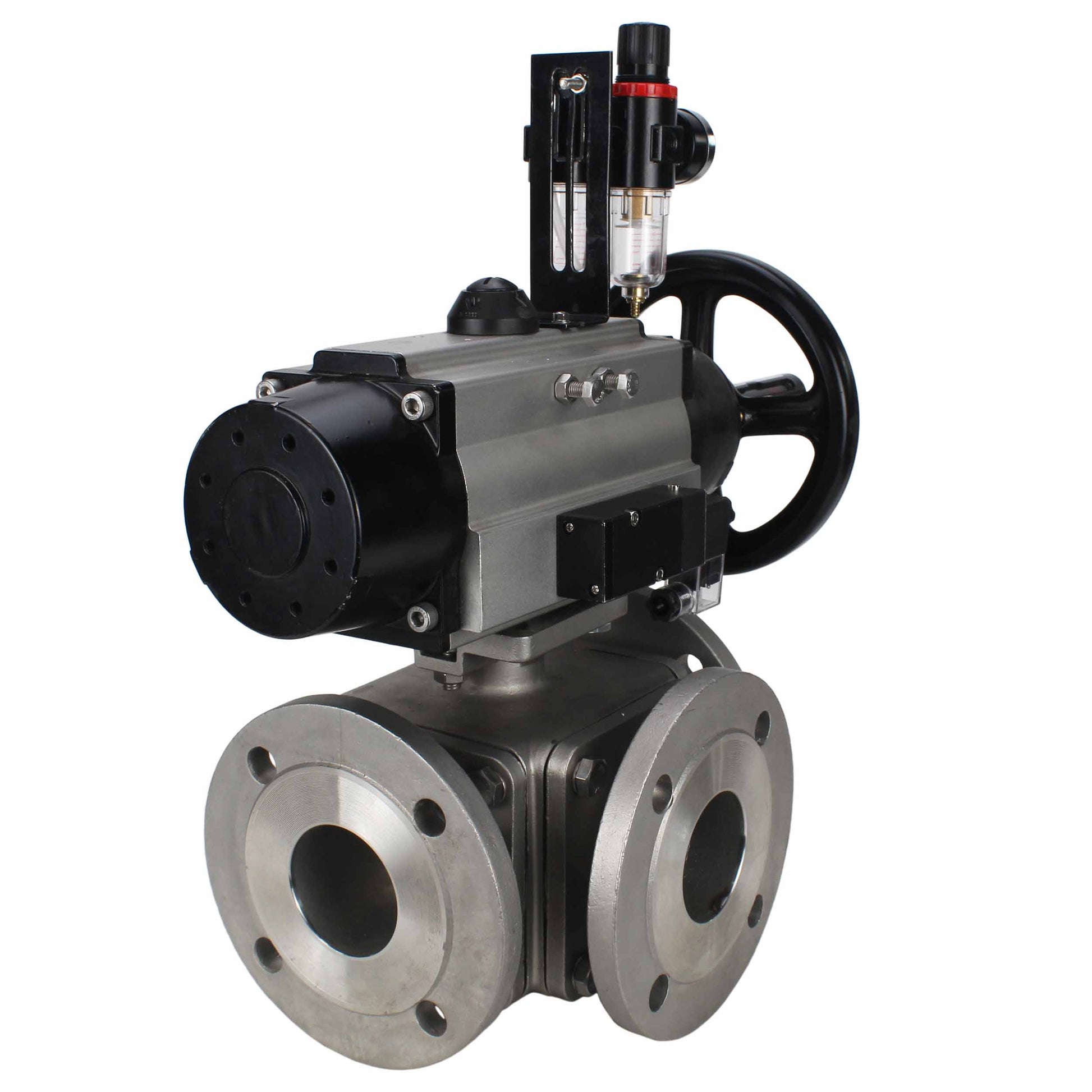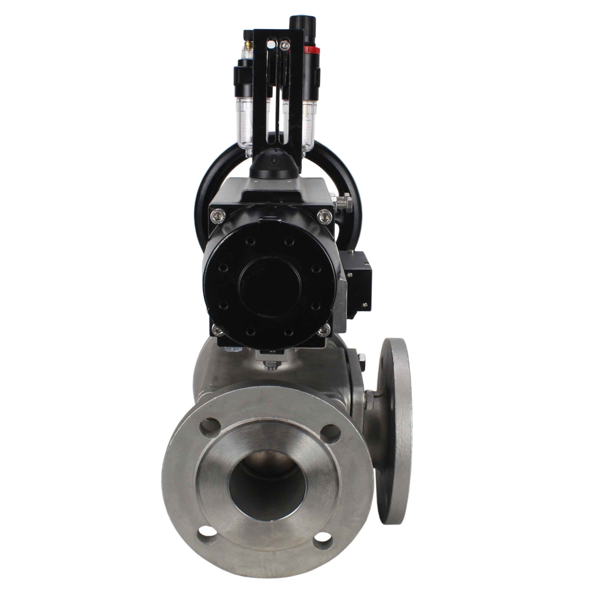 Válvulas de bola DNOVA BV3232P(4pc)-FP-3WL-F-ISO-H DN100 16 bar paso total, bridada, cuerpo - acero inoxidable SS316, brida ISO F10/F12, cuadrado 19x19, con actuador neumático de doble acción PA-DA-105-1, distribuidor neumático 4M310-08 24V y ATU AFC2000