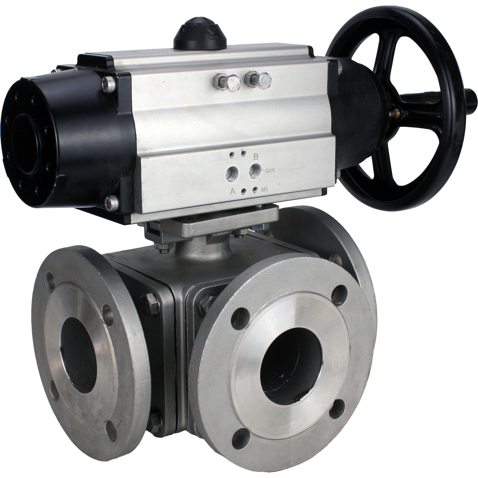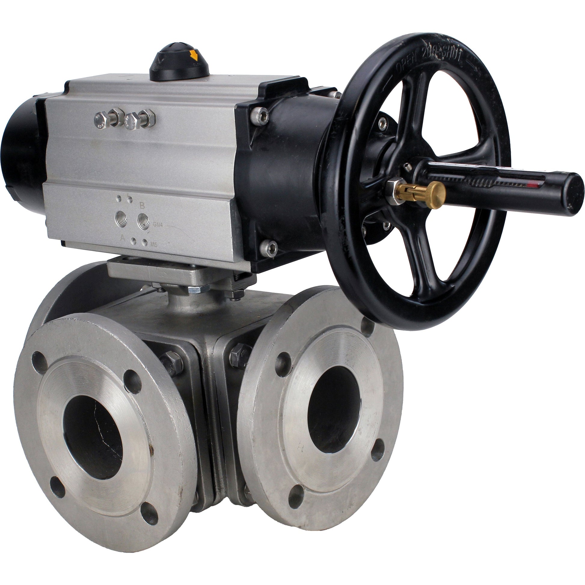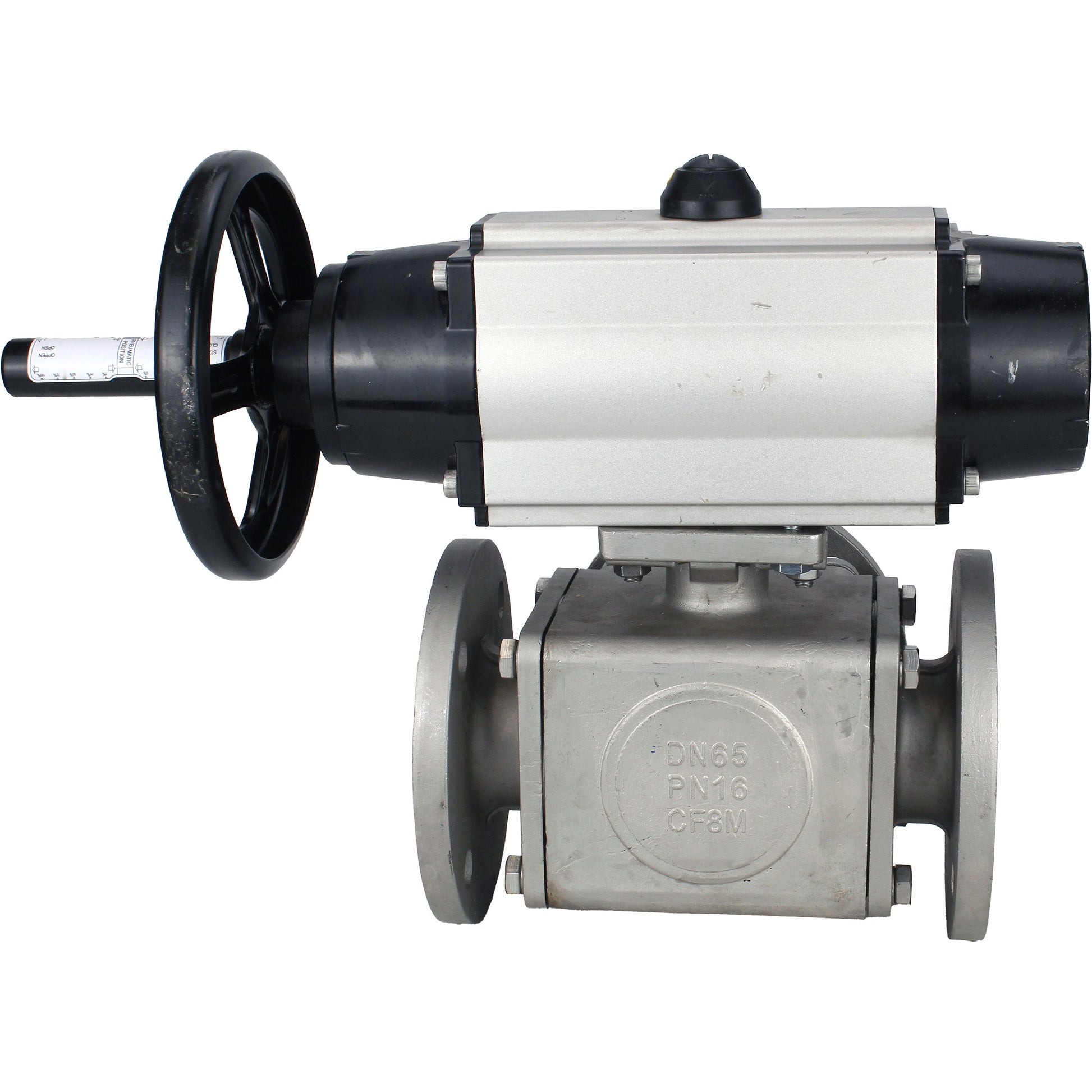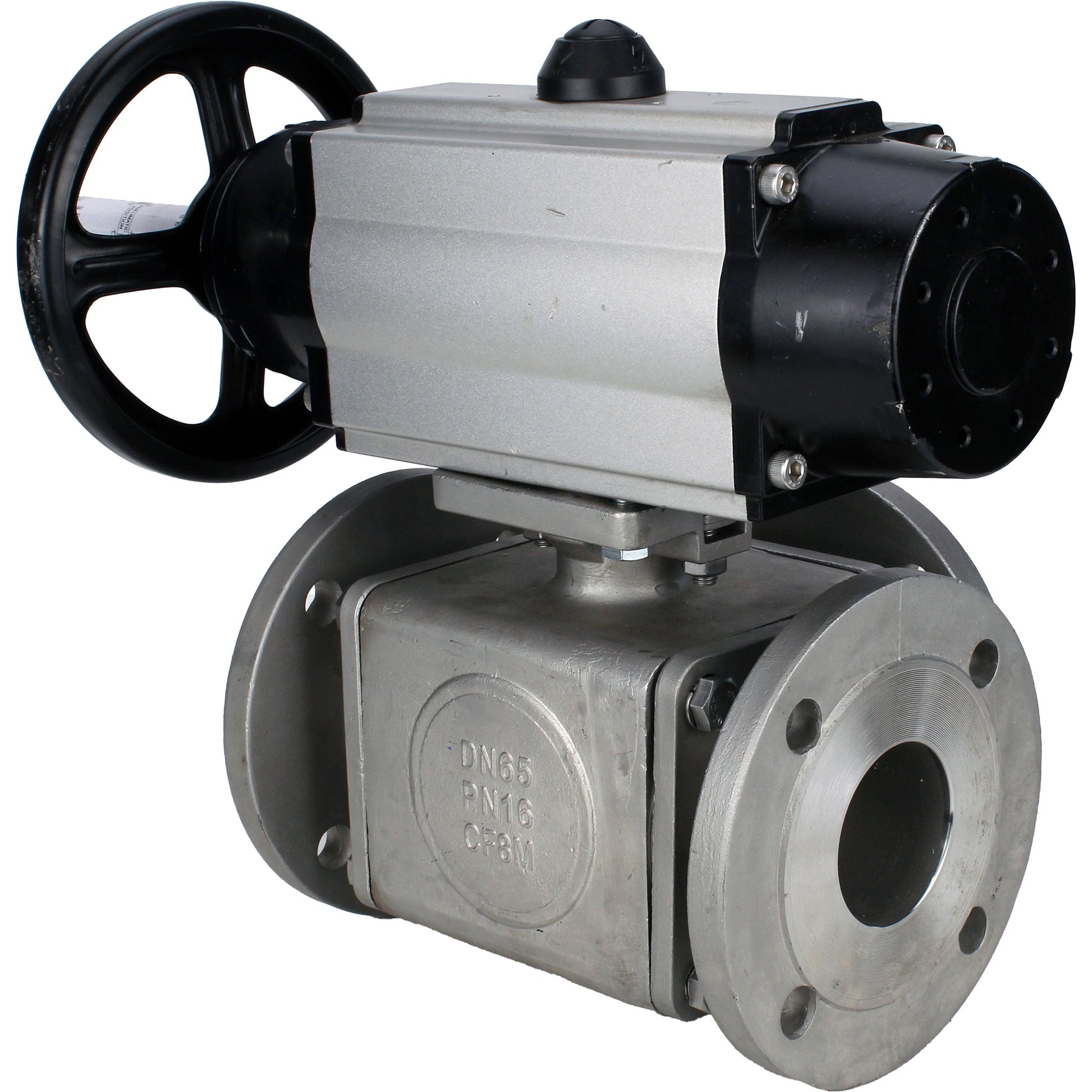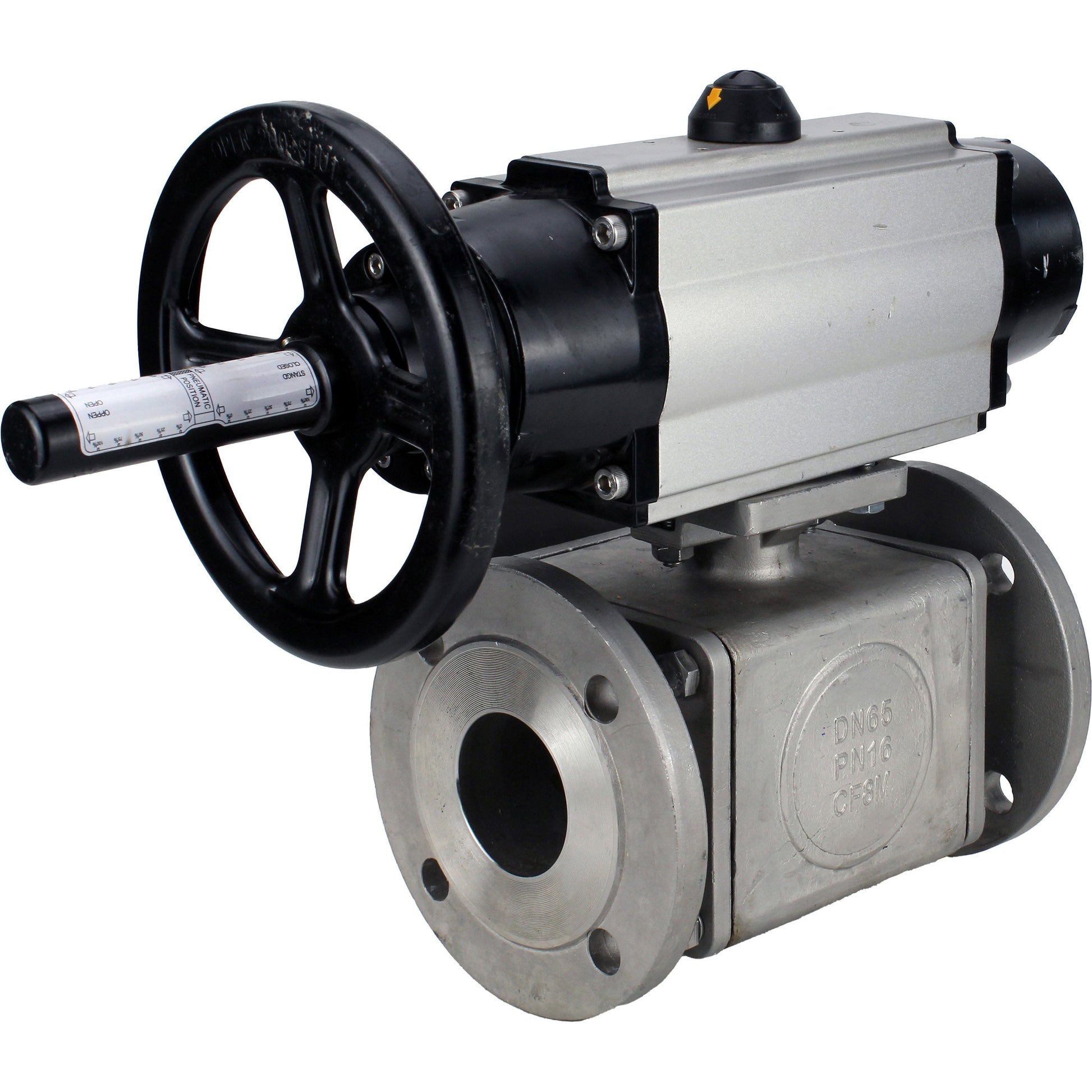 Válvulas de bola DNOVA BV3232P(4pc)-FP-3WL-F-ISO-H DN100 16 bar paso total, bridada, cuerpo - acero inoxidable SS316, brida ISO F10/F12, cuadrado 19x19, con actuador neumático doble PA-DA-105-1 acciones