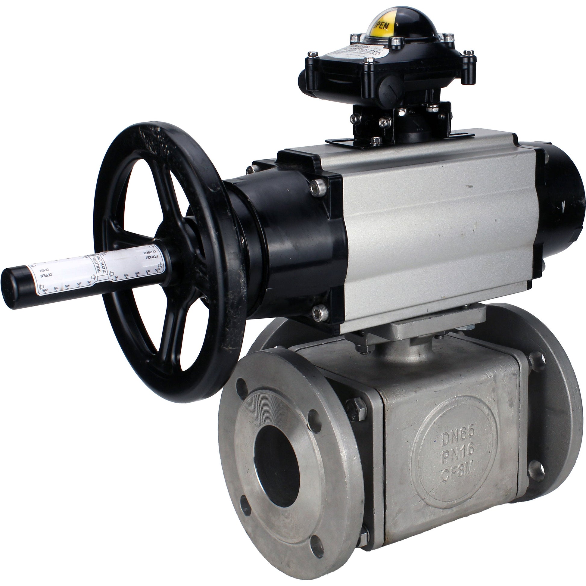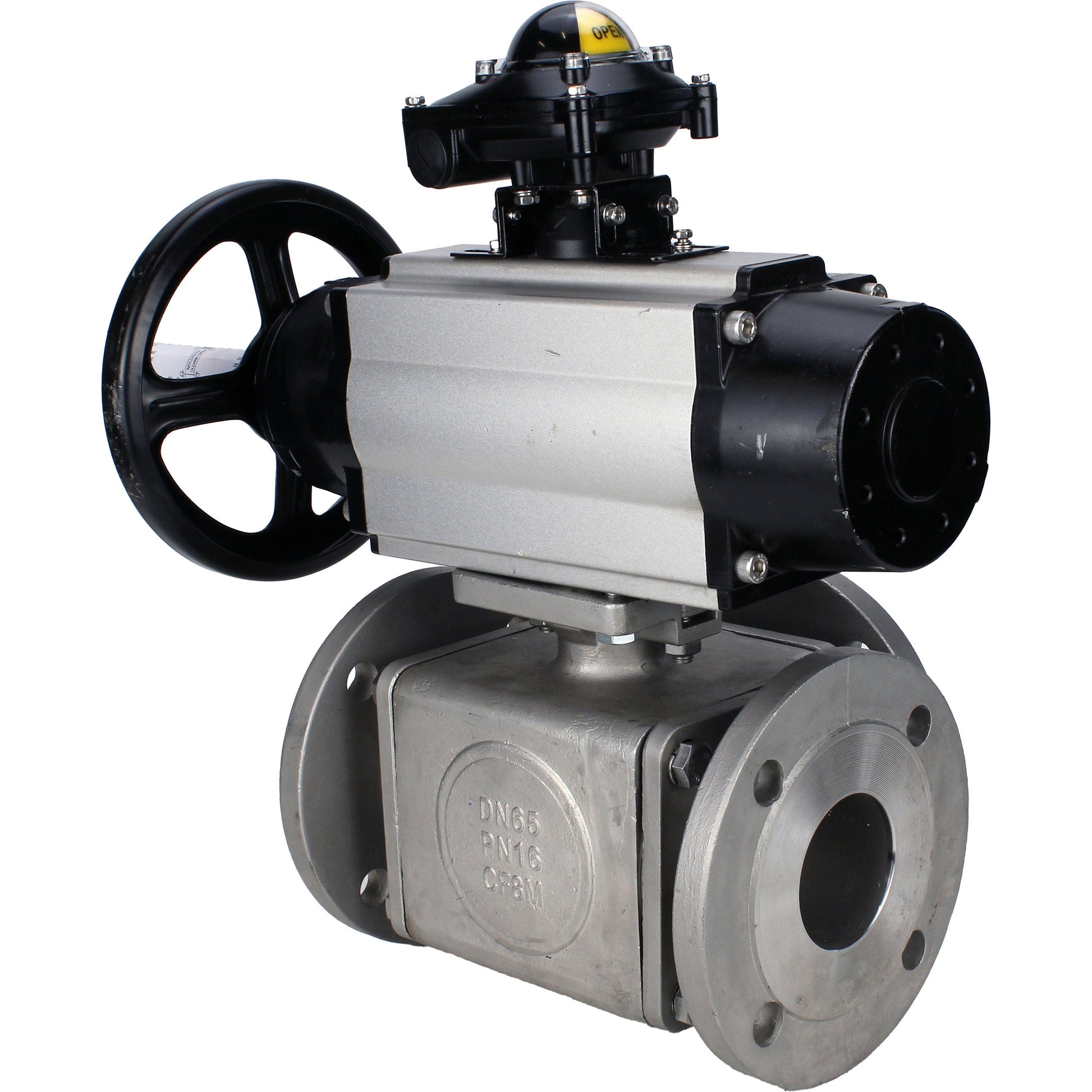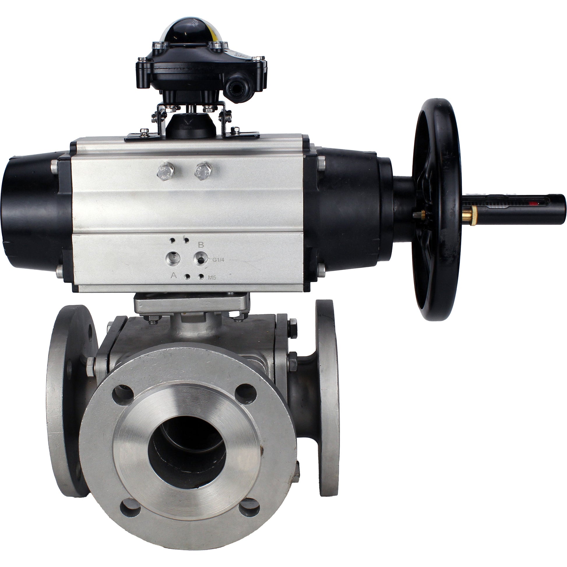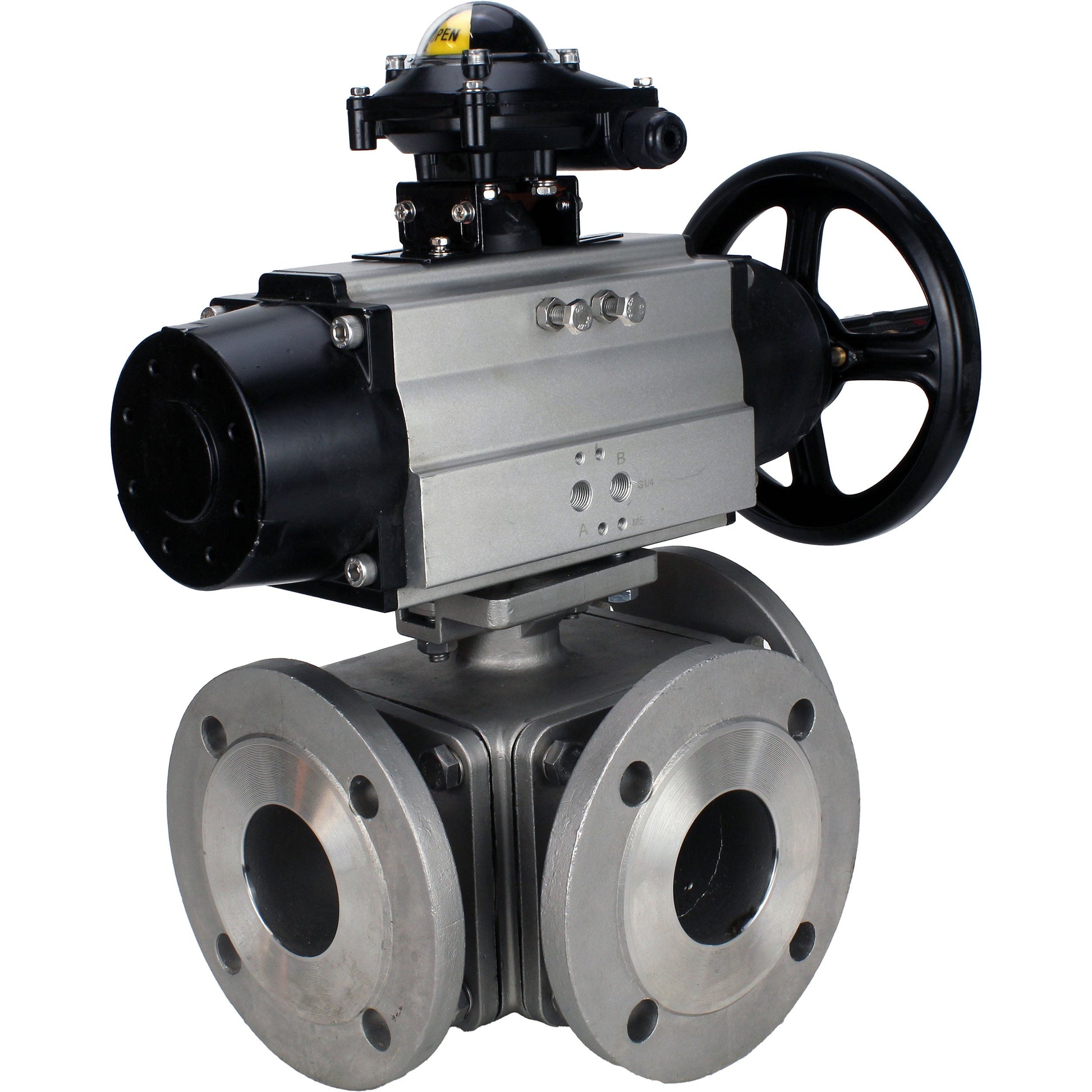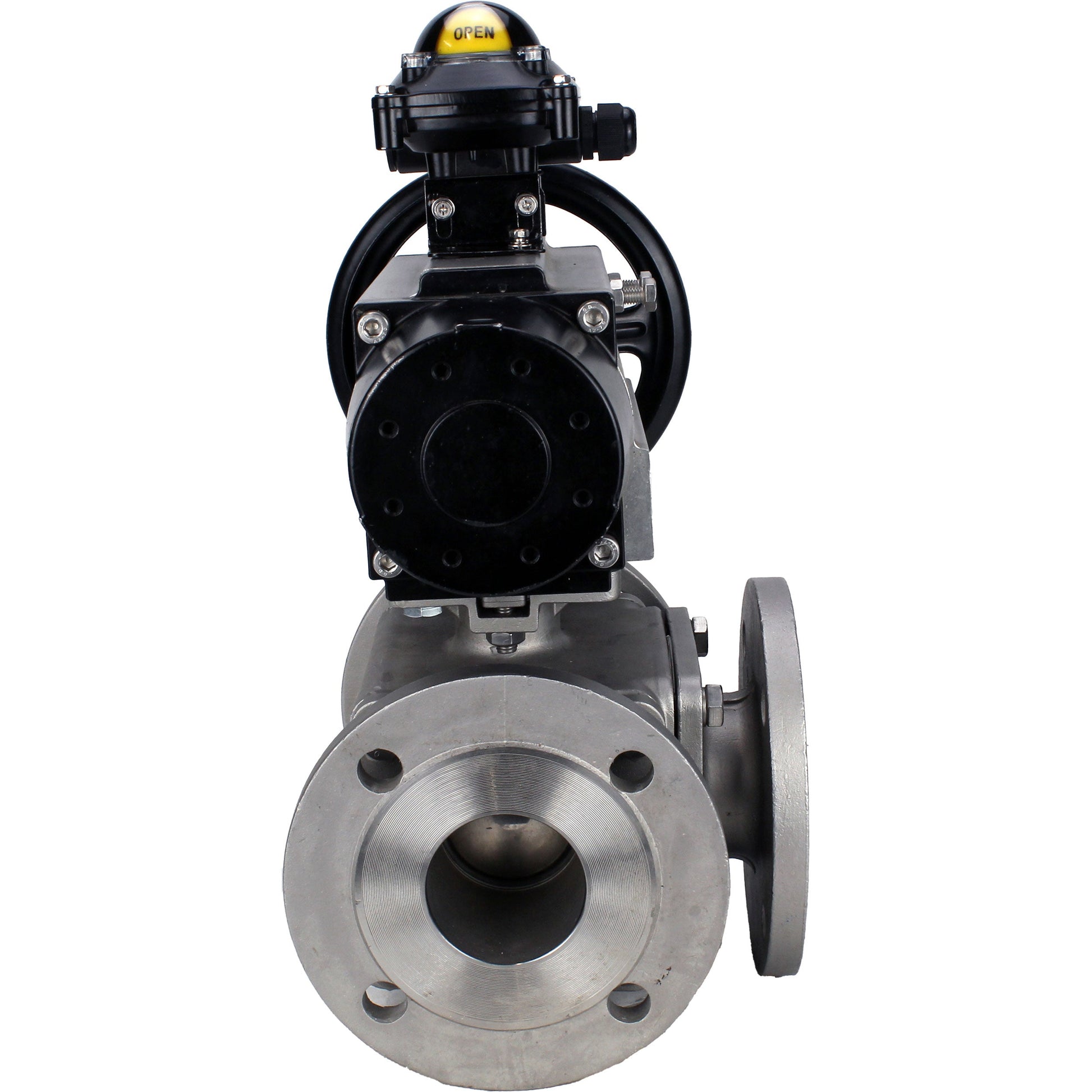 Válvulas de bola DNOVA BV3232P(4pc)-FP-3WL-F-ISO-H DN100 16 bar paso total, bridada, cuerpo - acero inoxidable SS316, brida ISO F10/F12, cuadrado 19x19, con actuador neumático doble PA-DA-105-1 acciones y LSU APL-210N