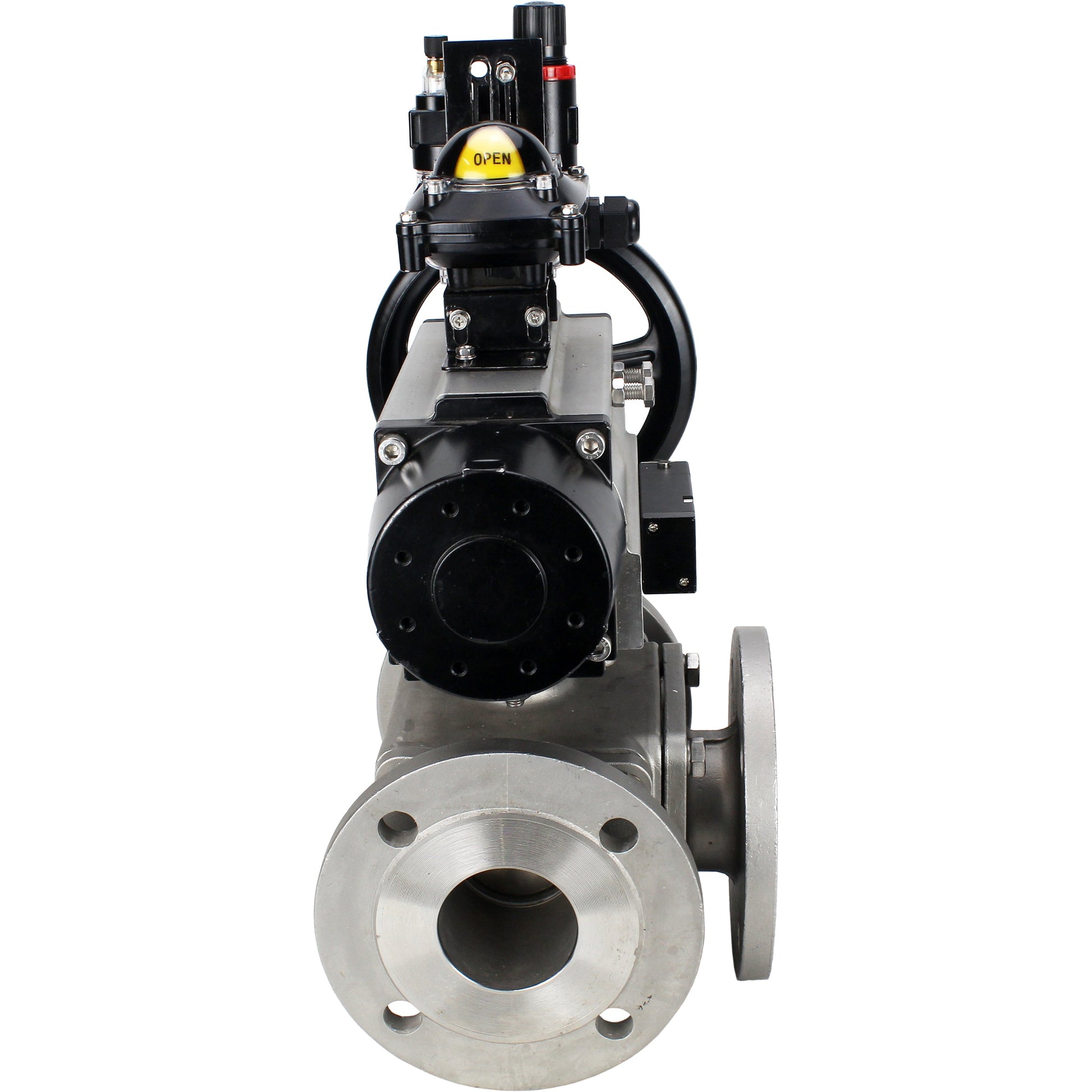 Válvulas de bola DNOVA BV3232P(4pc)-FP-3WL-F-ISO-H DN100 16 bar paso total, bridada, cuerpo - acero inoxidable SS316, brida ISO F10/F12, cuadrado 19x19, con actuador neumático PA-DA-105-1, distribuidor neumático 4M310-08 220V, LSU APL-210N y ATU AFC2000