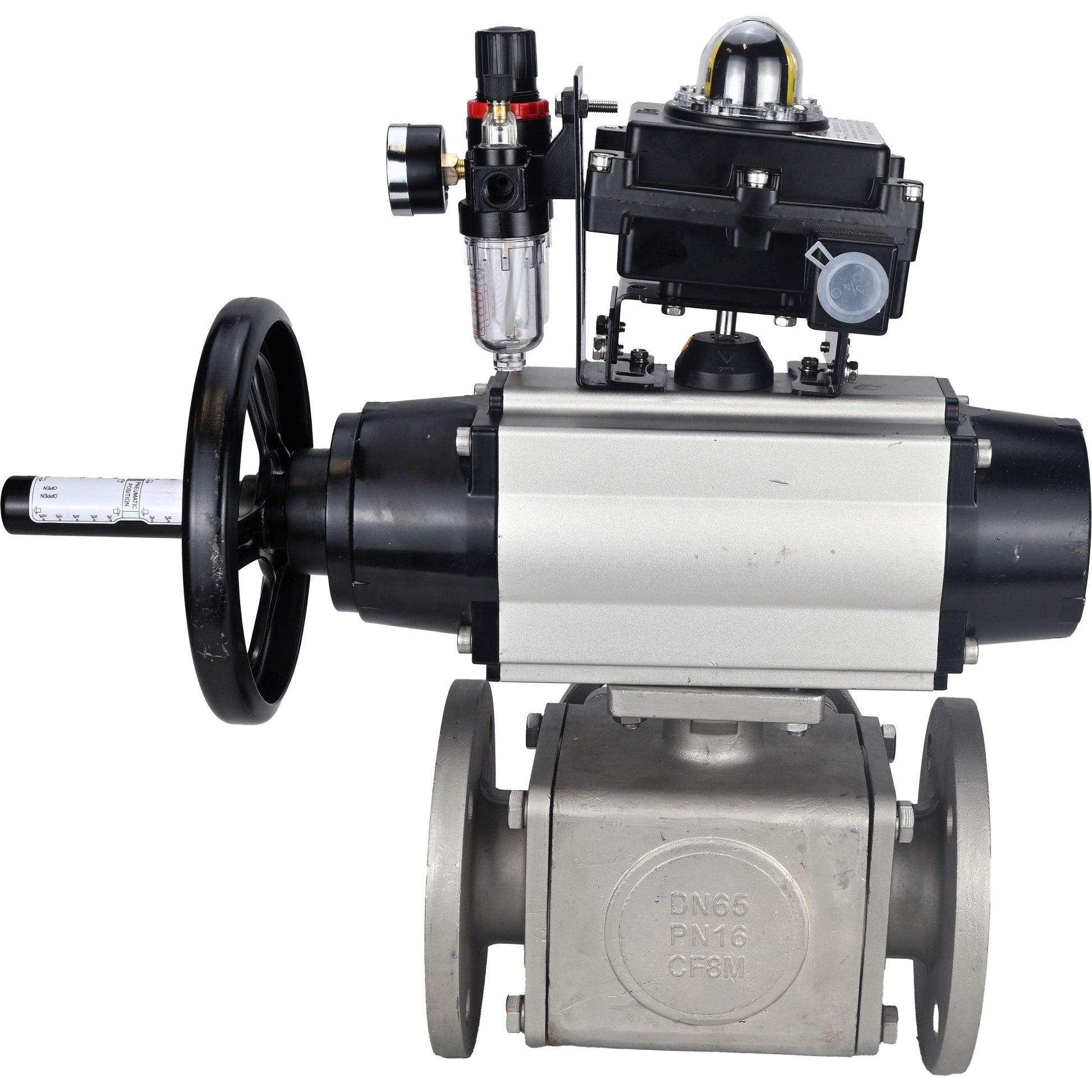 Válvulas de bola DNOVA BV3232P(4pc)-FP-3WL-F-ISO-H DN100 16 bar paso total, bridada, cuerpo - acero inoxidable SS316, brida ISO F10/F12, cuadrado 19x19, con actuador neumático PA-DA-105-1, distribuidor neumático 4M310-08 24V, LSU APL-410N EX y ATU AFC2000