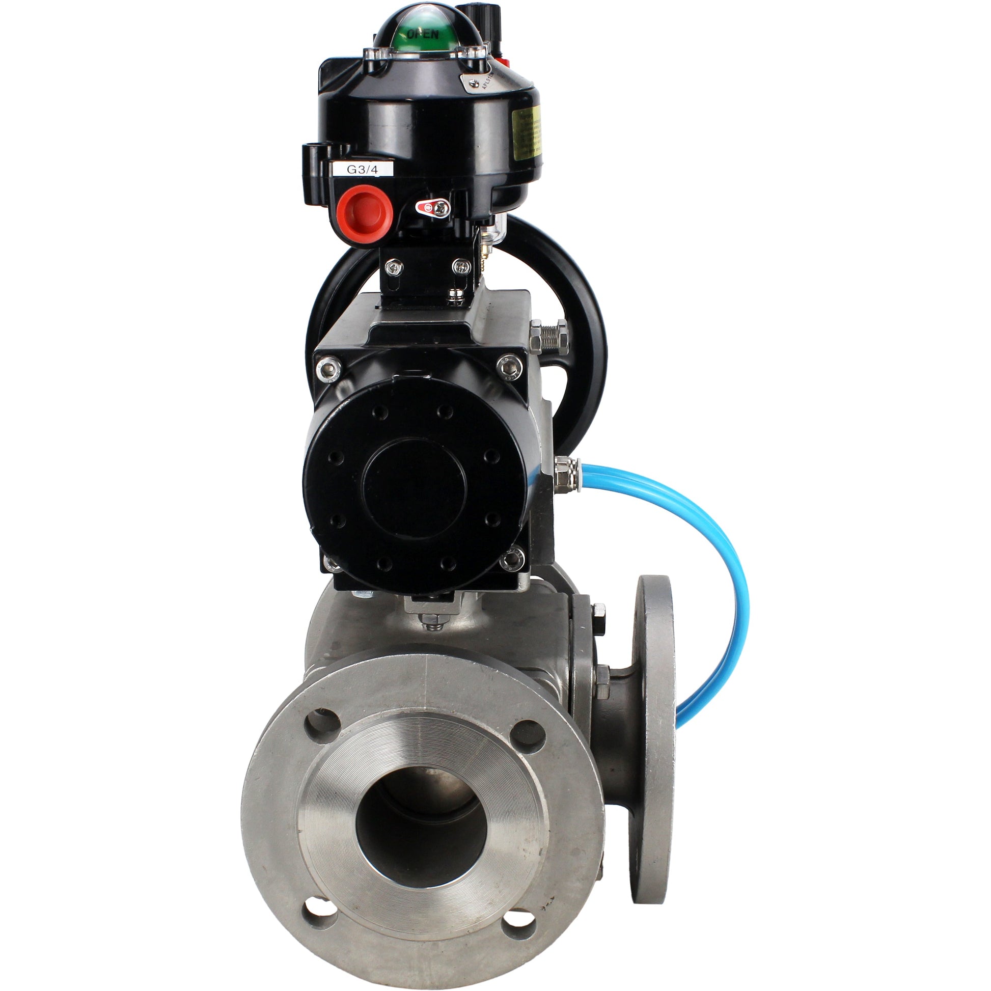Válvulas de bola DNOVA BV3232P(4pc)-FP-3WL-F-ISO-H DN100 16 bar paso total, bridada, cuerpo - acero inoxidable SS316, brida ISO F10/F12, cuadrado 19x19, con actuador neumático PA-DA-105-1, distribuidor neumático 4V320-8 220V, LSU APL-510N EX y ATU AFC2000