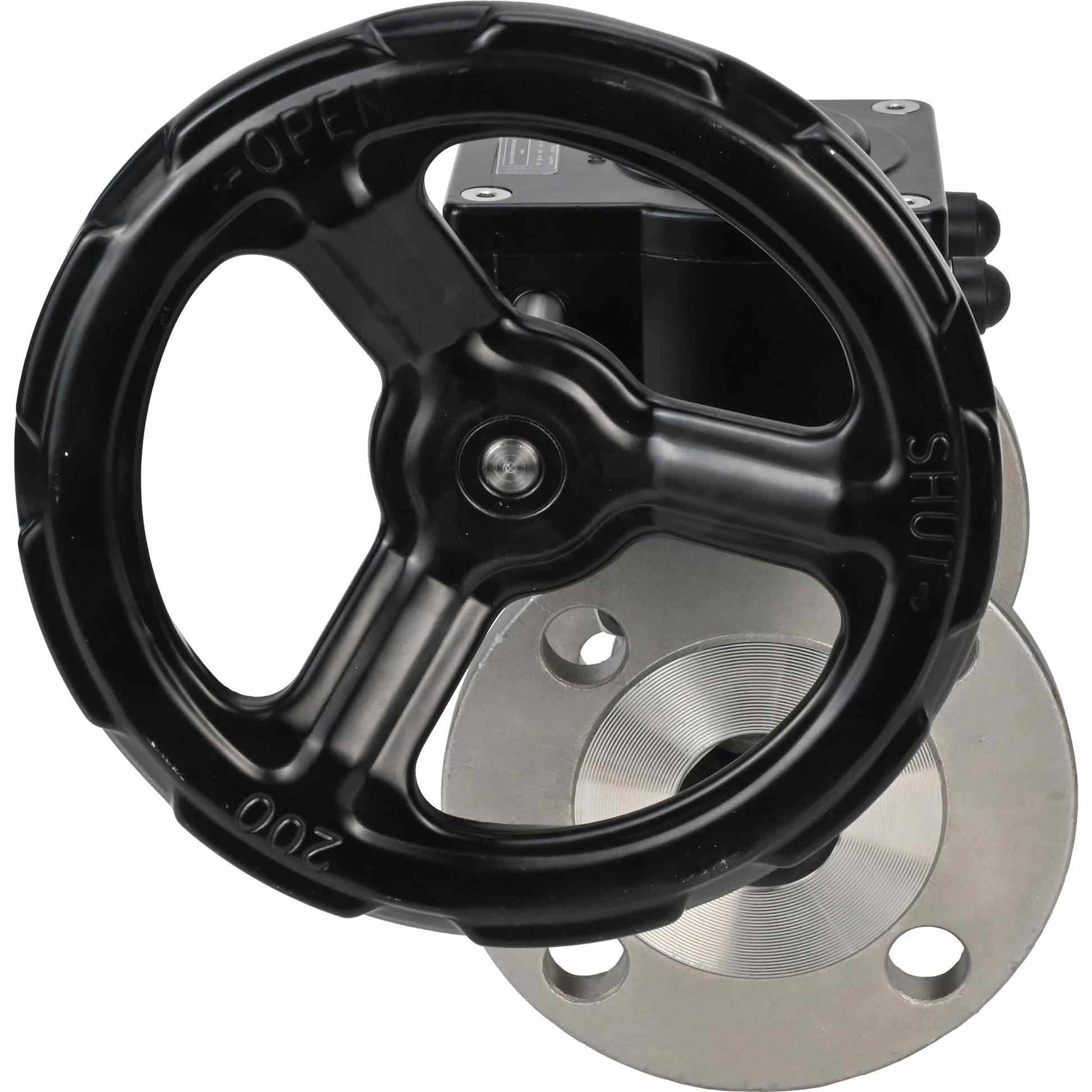 Válvula de bola de acero inoxidable DNOVA ksfpt-304-180-ham, material del cuerpo - acero inoxidable AISI 304, material de la bola - acero inoxidable AISI 304, sello - PTFE, accionado por manija