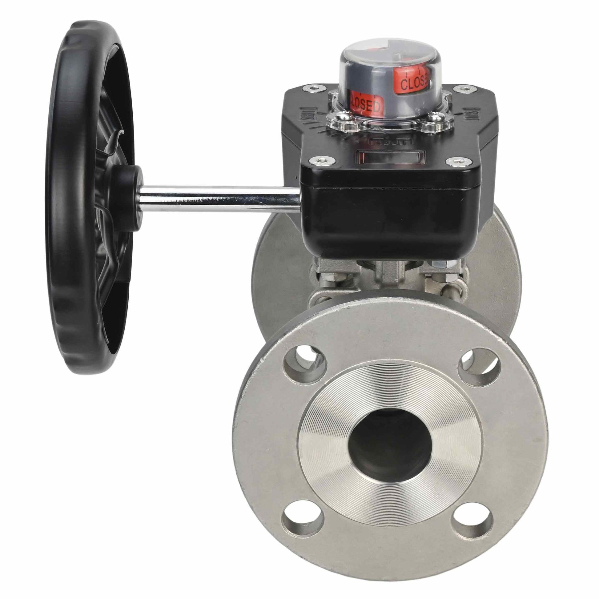 Válvula de bola de acero inoxidable DNOVA ksfpt-304-180-hgb, material del cuerpo: acero inoxidable AISI 304, material de la bola: acero inoxidable AISI 304, junta: PTFE, accionada por maneta.