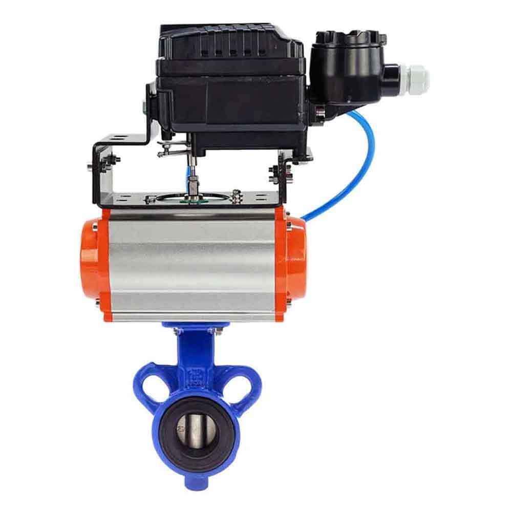 Válvula de mariposa de agua DNOVA al-316l-epdm-DNOVA-sa-yt1000rsn, material del cuerpo: aleación de aluminio, material del disco: acero inoxidable AISI 316L, junta: EPDM, accionamiento neumático.