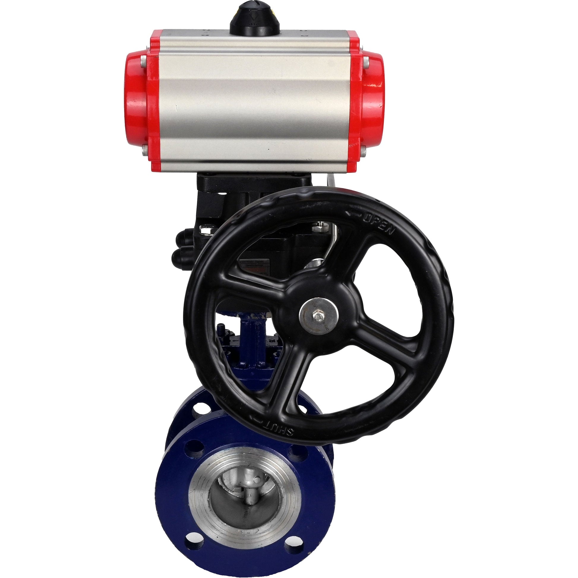 Válvula de mariposa de agua DNOVA WBV3EX-3432M-1W-F-ISO, material del cuerpo - Acero al carbono, material del disco - Acero inoxidable AISI 316, sello - Metal, actuador neumático PA-DA volante de doble acción MON