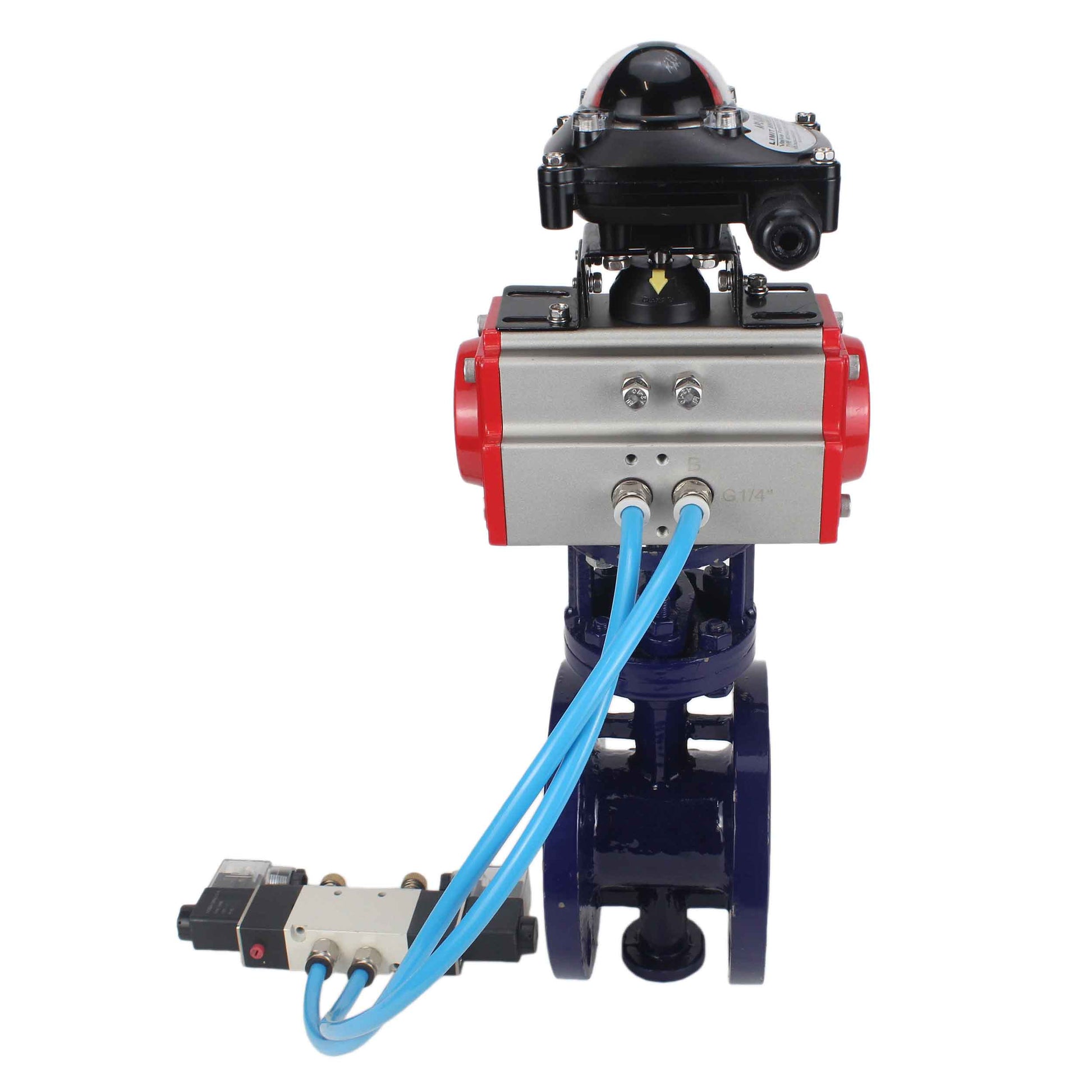 Válvula de mariposa de agua DNOVA WBV3EX-3432M-1W-F-ISO, material del cuerpo: acero al carbono, material del disco: acero inoxidable AISI 316, sello: metal, actuador neumático PA-SA con resortes de retorno, 4V320-08 220V, LSU APL-210N